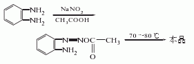 ①邻二胺常压法 先将邻二胺溶于醋酸水溶液中,并配制40%左右的亚硝酸钠水溶液。两种溶液预冷至1~5℃后混合反应,并保持在冰浴中,随后迅速升温至80℃闭环生成并三氮唑,冷却后过滤、水洗得到粗产品。在绝对压力为2000pa下蒸馏,收集2.0~204℃的馏分,用结晶得到产品,收率为70%~80%。另一生产实例为:将邻二胺加入50℃水溶液中溶解,再加入冰醋酸,降温至5℃,加入亚硝酸钠搅拌反应,反应物渐渐变成暗绿色,温度升至70~80℃,溶液变成橘红色,于室温放置2h,冷却、滤出结晶,用冰水洗涤,干燥得粗品;将粗品减压蒸馏,收集201~204℃(2.0kpa)的馏分,再用重结晶,可得熔点为96~97℃的产品,产率约80%。